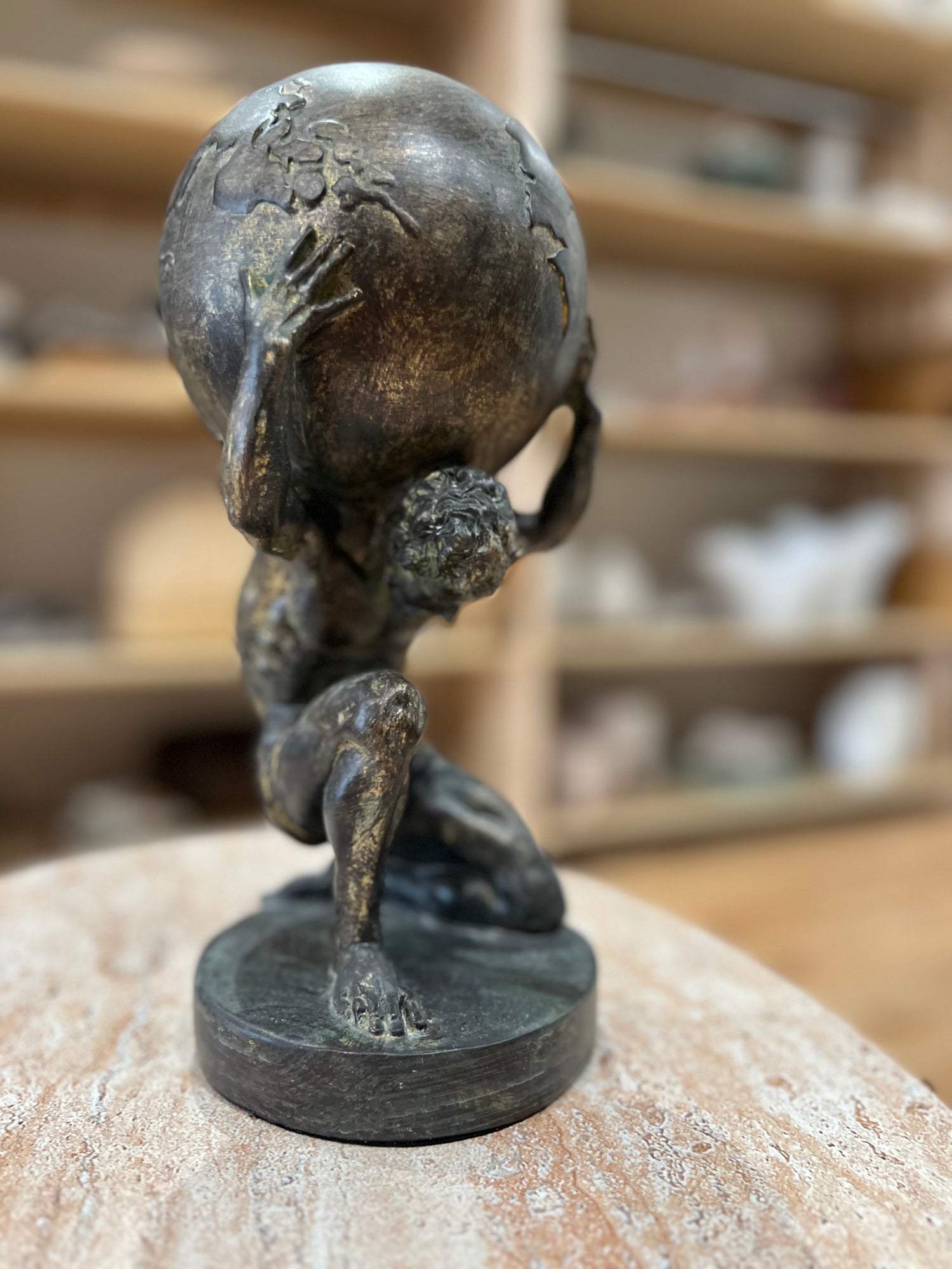 Transform your space with the Atlas Holding the World statue, measuring 28.5 X 14 X 15 CM.