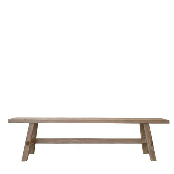 A beautifully crafted long wooden bench that blends rustic charm with modern simplicity. Perfect for styling in multiple spaces, this versatile piece can be placed at the end of a bed to hold blankets and cushions, or as a welcoming statement in an entranceway.