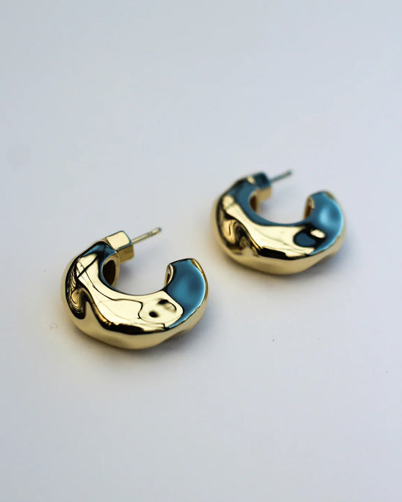 The Hammered Chubby Hoops are the perfect statement hoop to wear all day, with any outfit. These hoop earrings are minimalist enough to wear everyday, while also being eye catching to wear as a statement piece.