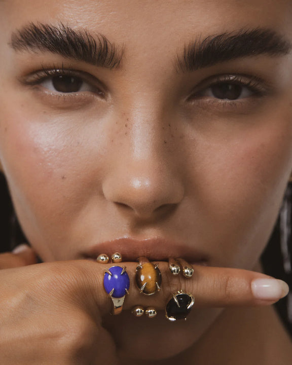 The Accord Gemstone Ring features a modern fluid design, with a cabochon peridot gemstone set in F+H Studios over-sized claw setting expertly crafted and designed, the Accord Gemstone Ring boasts a unique fluid design that highlights a captivating cabochon peridot gemstone. With an adjustable size feature, this ring is perfect for any occasion.