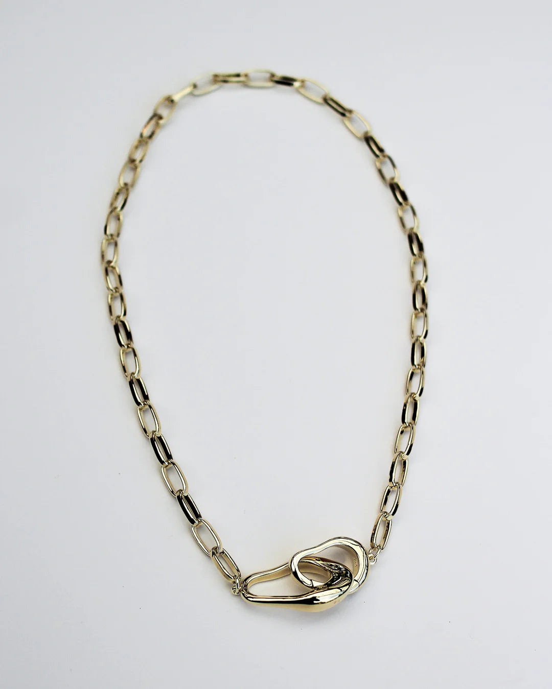 The Genesis Chain Necklace is a unique styling piece featuring paperclip chain with F+H Studios signature organic links. This piece is elevated by the custom feature link that ensures a seamless design and beautiful detailing.