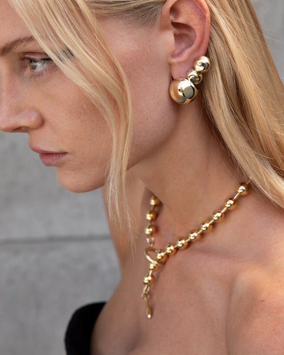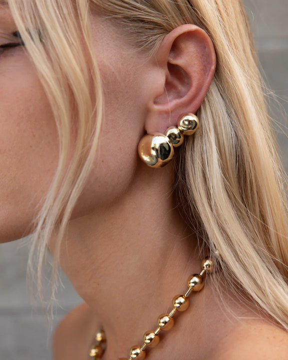 The Hammered Ball Studs are a modern styling piece with a simple ball design concept executed to perfectly hug the ear lobe. Available in a small huggie size or large statement earring design, with hammered metal texture for an industrial inspired edge.