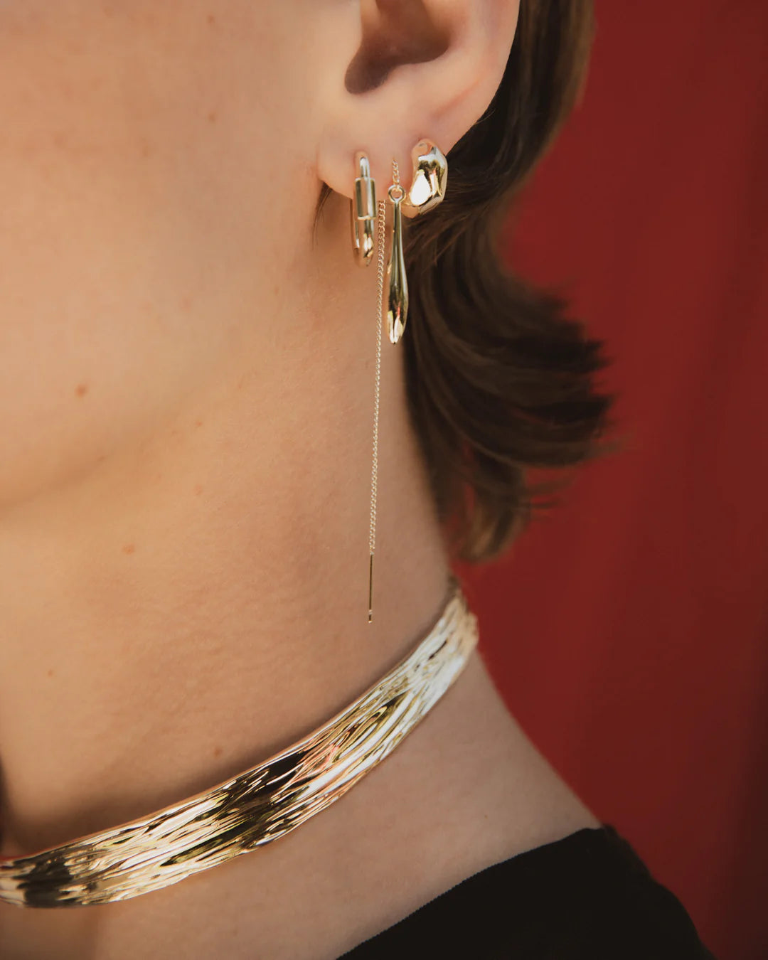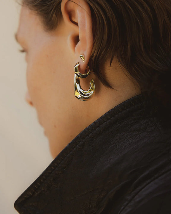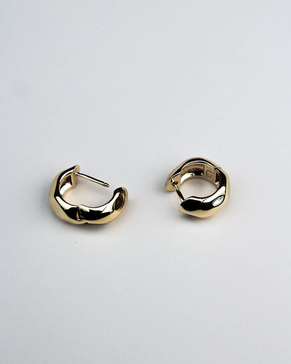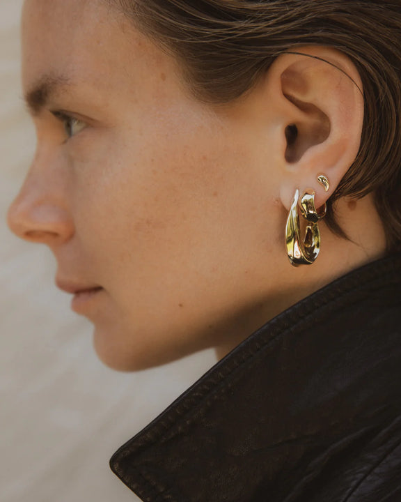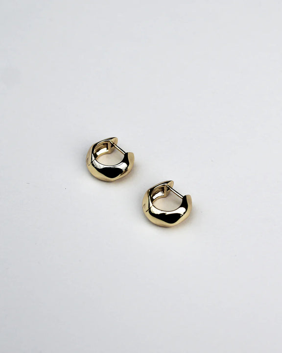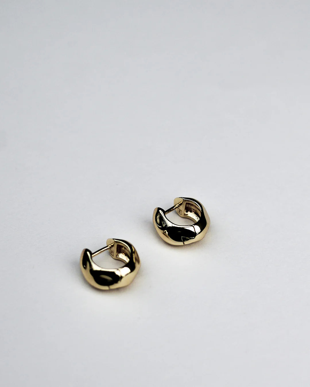 The Hammered Huggies are an essential F+H styling piece with a simple chubby hoop shape with their signature hammered metal design.