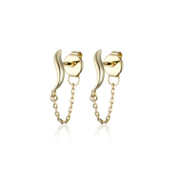 The Wave Chain Stud Earrings feature a fine curb chain attached to a wave shape stud to wrap around the ear lobe and secure to the butterfly clip backing.