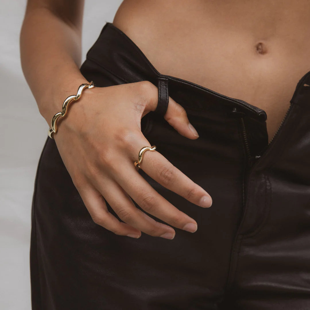 The Wave Wrist Cuff is a modern minimalist design with a fluid form to match other pieces from our core jewellery collection.