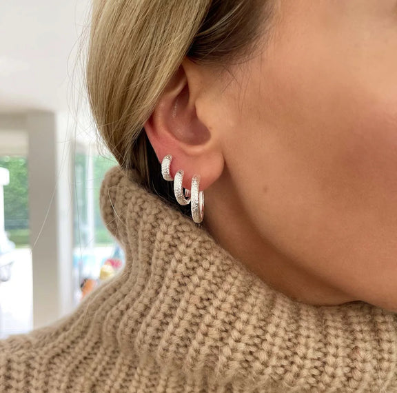 A timeless twist on a classic silhouette, the Antique Silver Midi Hoops bring understated elegance to your everyday look. Crafted from antique-finished sterling silver, these mid-sized hoops strike the perfect balance between bold and refined. Their organic shape and subtle texture add a vintage-inspired edge, making them a versatile staple for both day and evening wear.