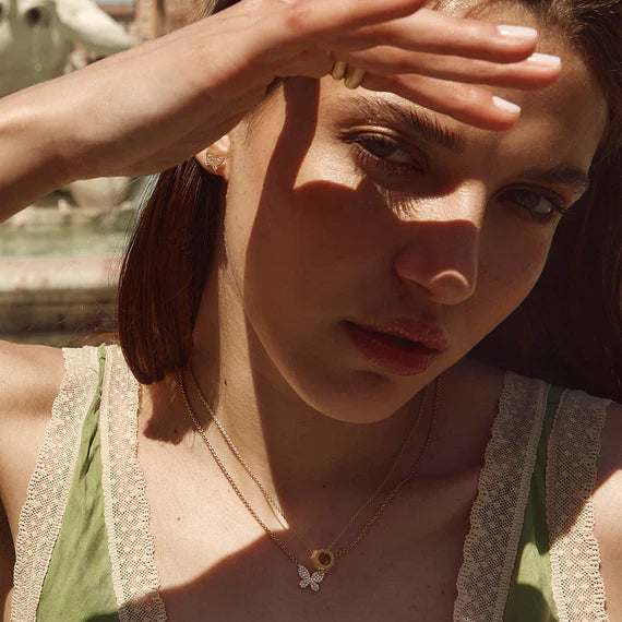 Add a sense of dazzle and adventure with these butterfly stud earrings. Their intricate design and the subtle illumination will add a soft glow to your face and outfit. Can be worn solo or combined with other studs and huggies.