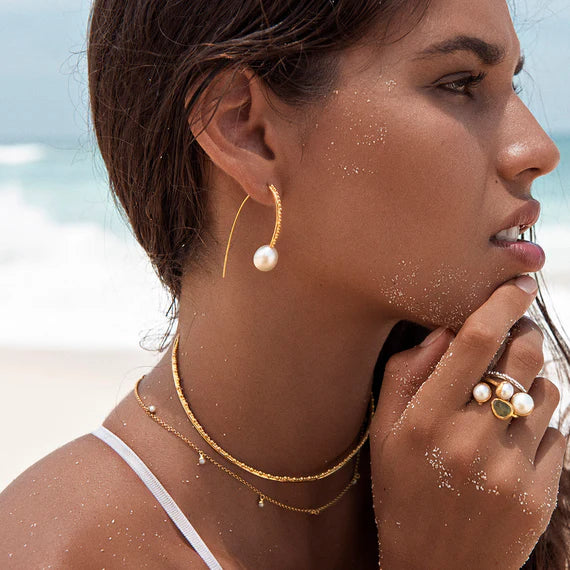 Inject a touch of sophistication and colour into your look with this freshwater pearl and green sapphire ring set in sterling silver with 18k gold plate polished finish.