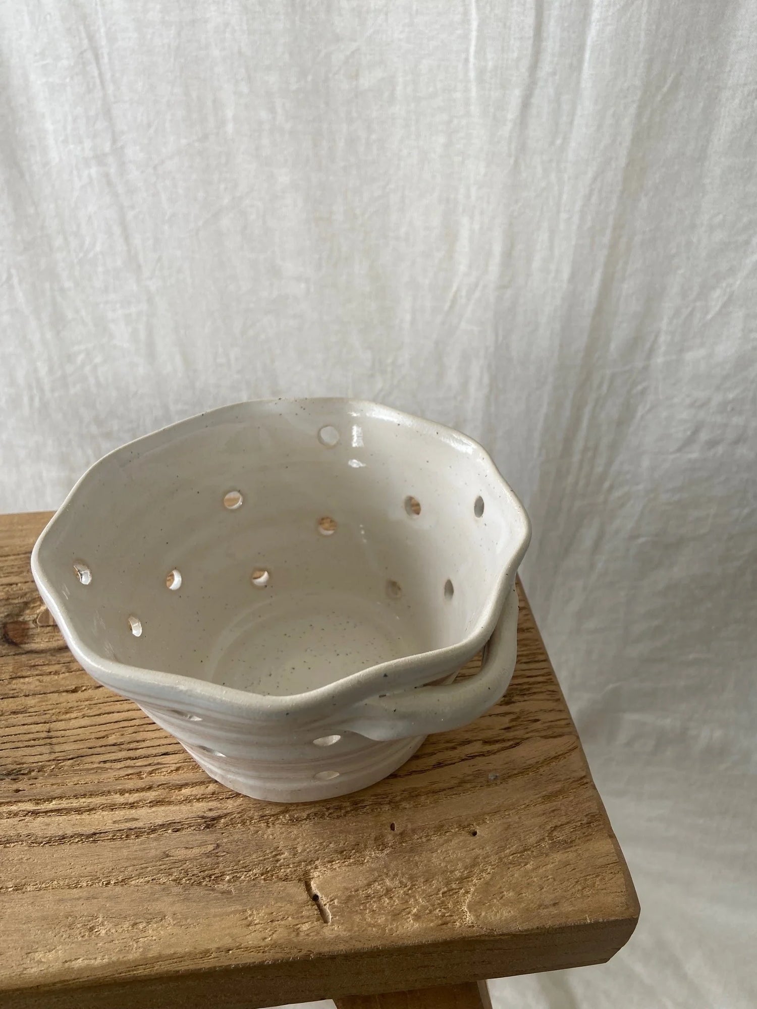 This rustic white glossy glazed berry bowl can also be used as a daily kitchen strainer