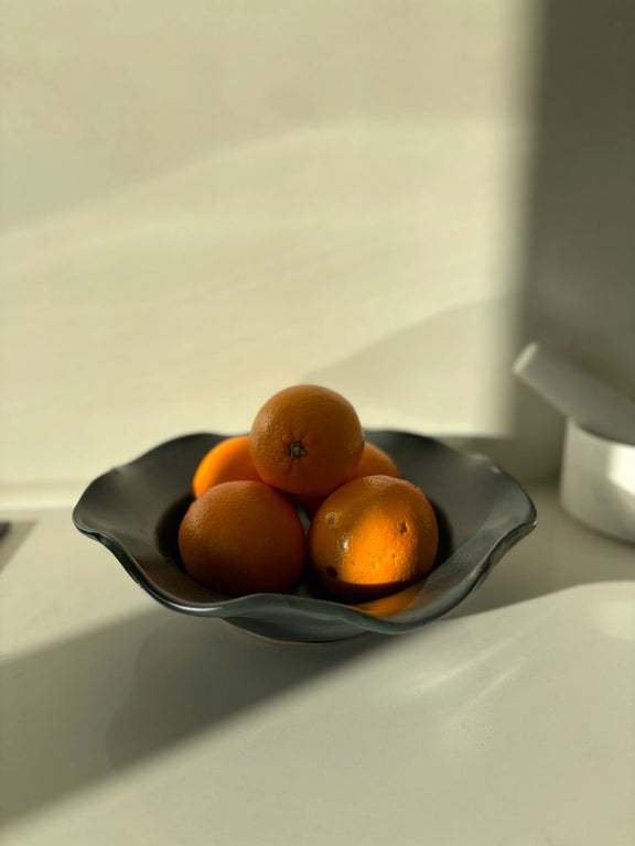 Elevate your kitchen decor with the Black Rustic Pedestal Wavy Bowl. The unique bowl design adds a touch of elegance to any table setting. Crafted from durable stoneware, this bowl is perfect for serving salads, fruits, and snacks. Make a statement with this must-have kitchen accessory.