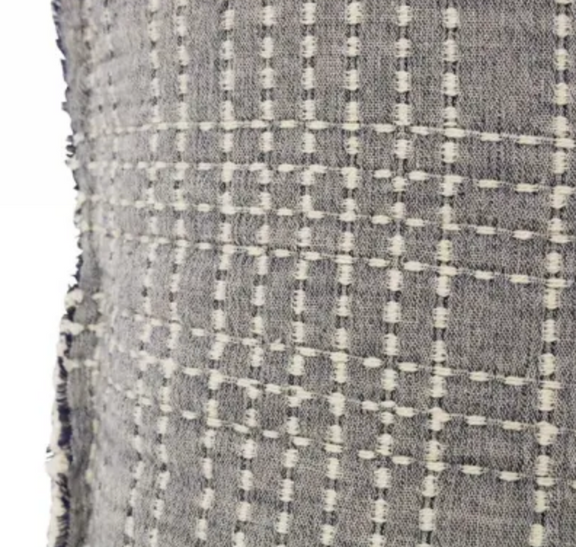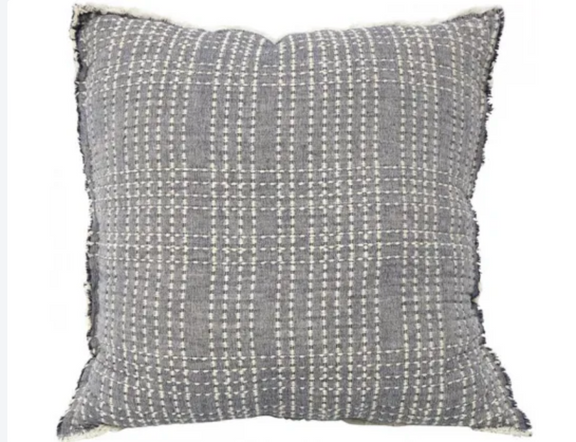 Bring a touch of relaxed elegance to your space with the Quilted Jacquard Cushion Cushion in blue/grey colour-way. Featuring delicate Kantha-style stitching and subtle ribbed detailing, this cushion exudes effortless charm. The gentle frayed edging adds to its laid-back appeal, making it perfect for layering on sofas, beds, or armchairs. A stylish accent for a calm, inviting atmosphere.