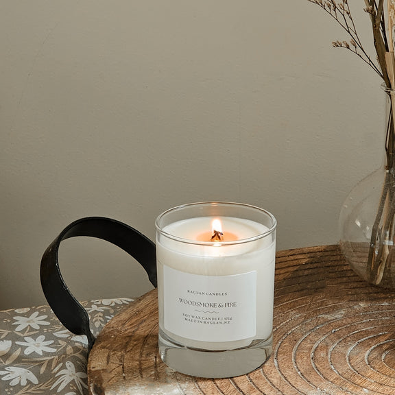 This candle is the only one in our Raglan Candles collection that features a beautiful and unique X wooden wick that is eco-friendly and provides a clean burning that will create a playful cylindrical flame when burned.