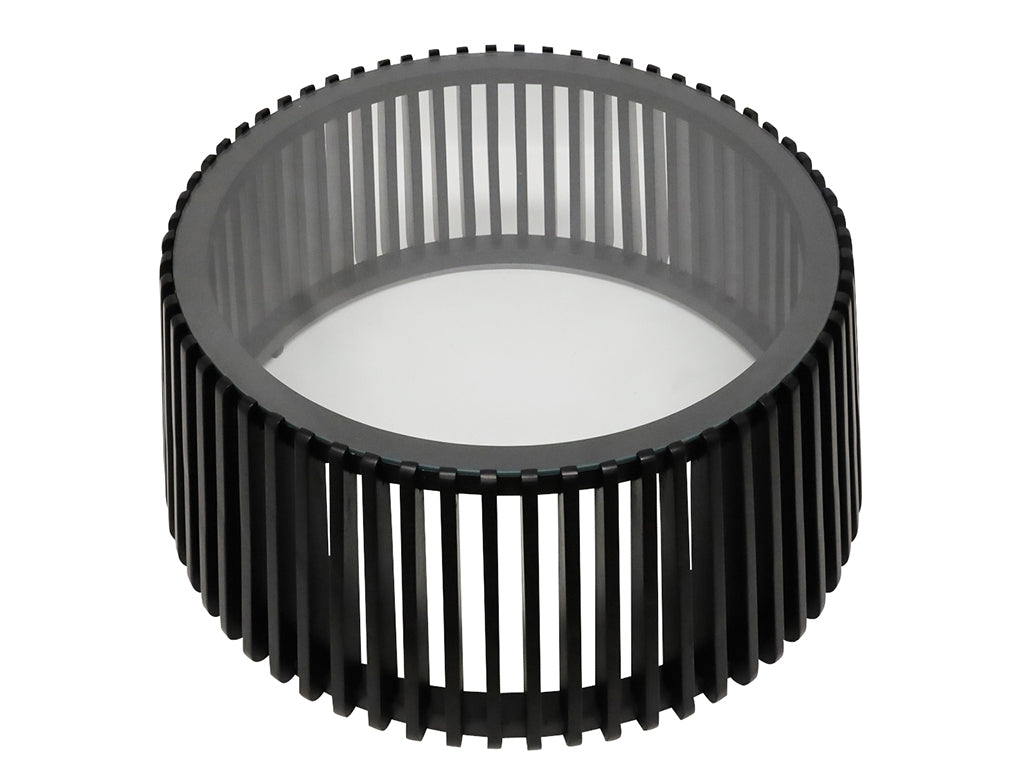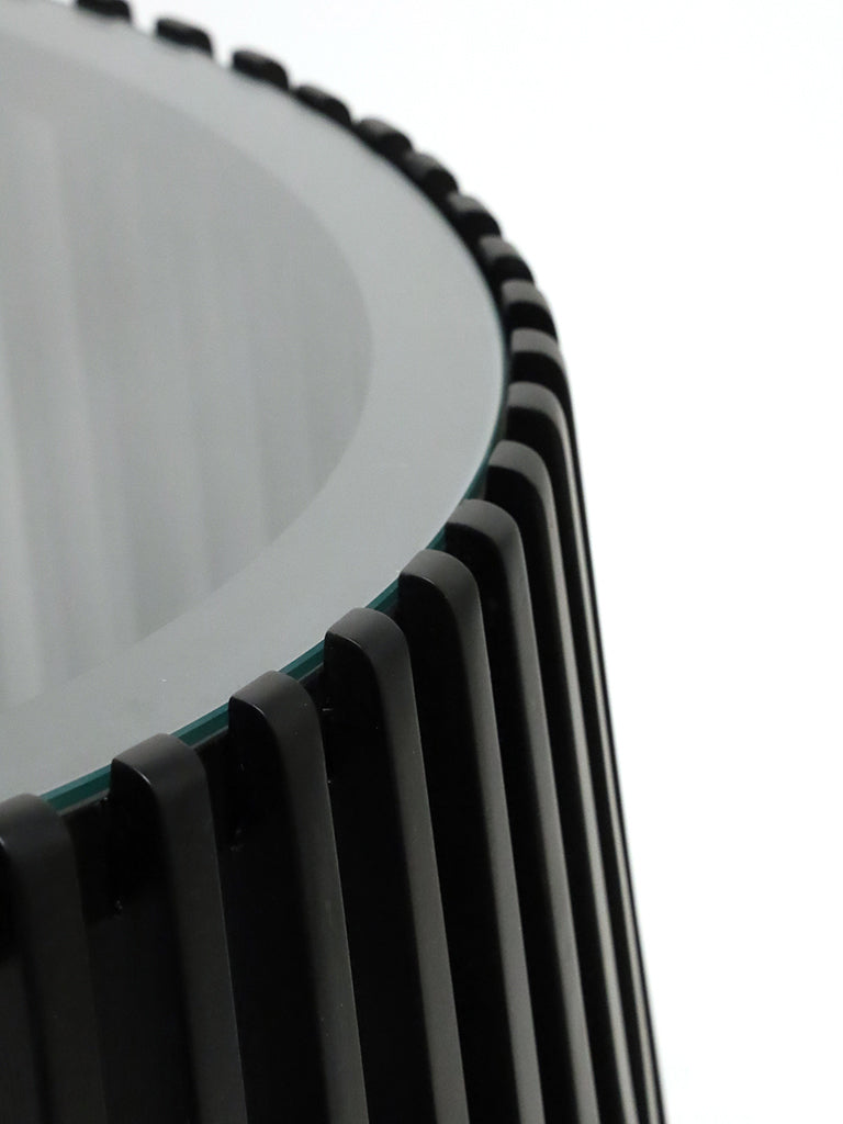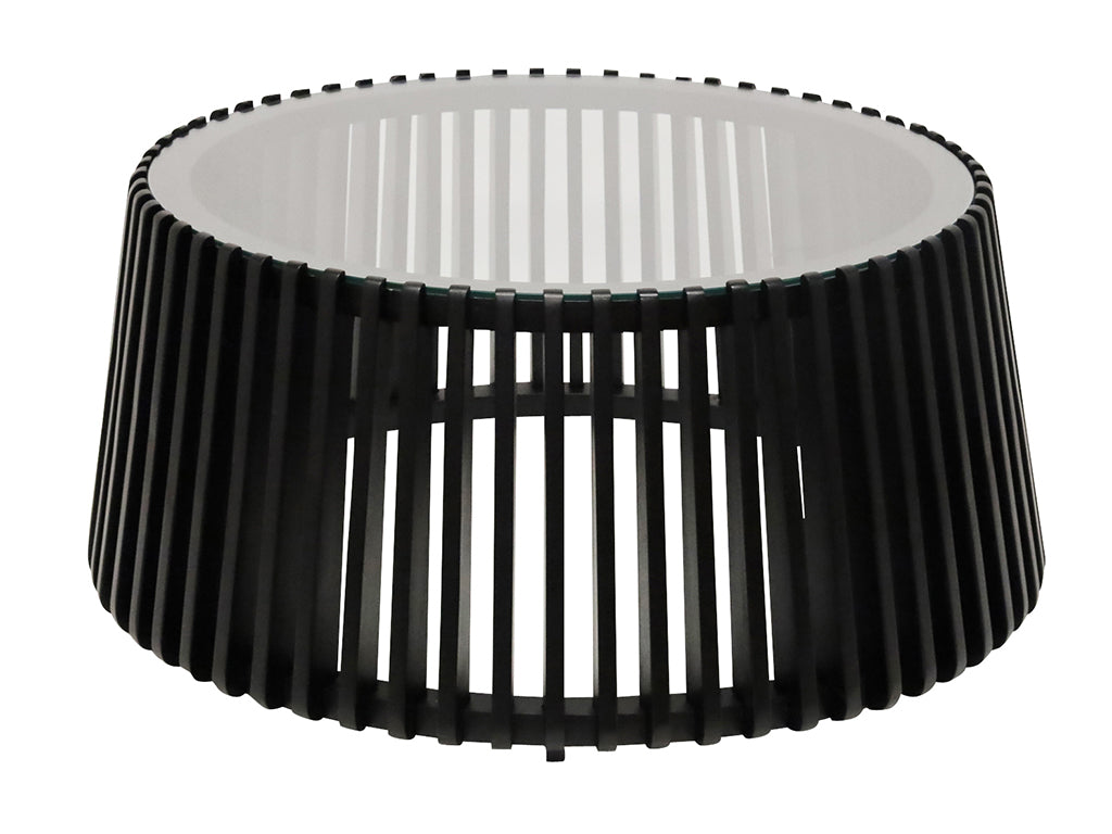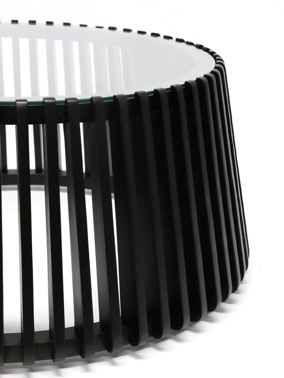 A bold statement piece with a contemporary edge, the Epica Coffee Table combines sleek black slats with a refined glass top for a striking contrast. The open-frame design adds an airy feel while maintaining a strong visual presence, making it the perfect centrepiece for a modern living space.