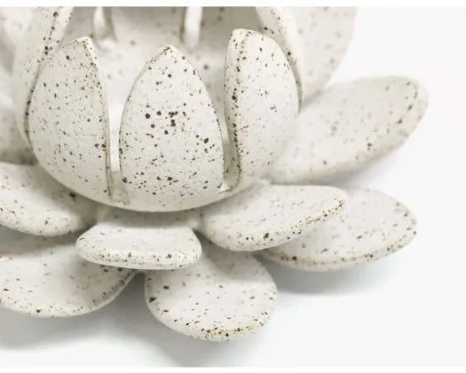 Elegant and serene, this beautifully crafted ceramic lotus tea light holder adds a touch of tranquility to any space. Designed with delicate petals and a speckled sandy white finish, it creates a soft, calming glow when lit. Available in two sizes, they can be displayed individually or paired together for a layered effect. Perfect for bringing warmth and ambiance to your home decor.