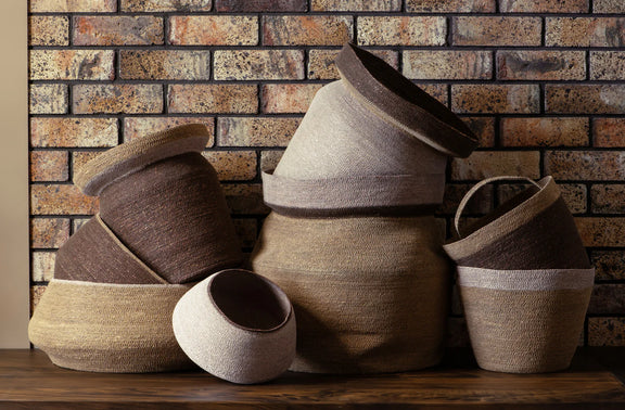 This versatile low profile shape is perfect for a slender top shelf, under a floating vanity or to house your bits and pieces in a cozy corner. Low in height, but generous in volume, when displayed together with its like-coloured variations you can create a visual nest of rich, woven hues.