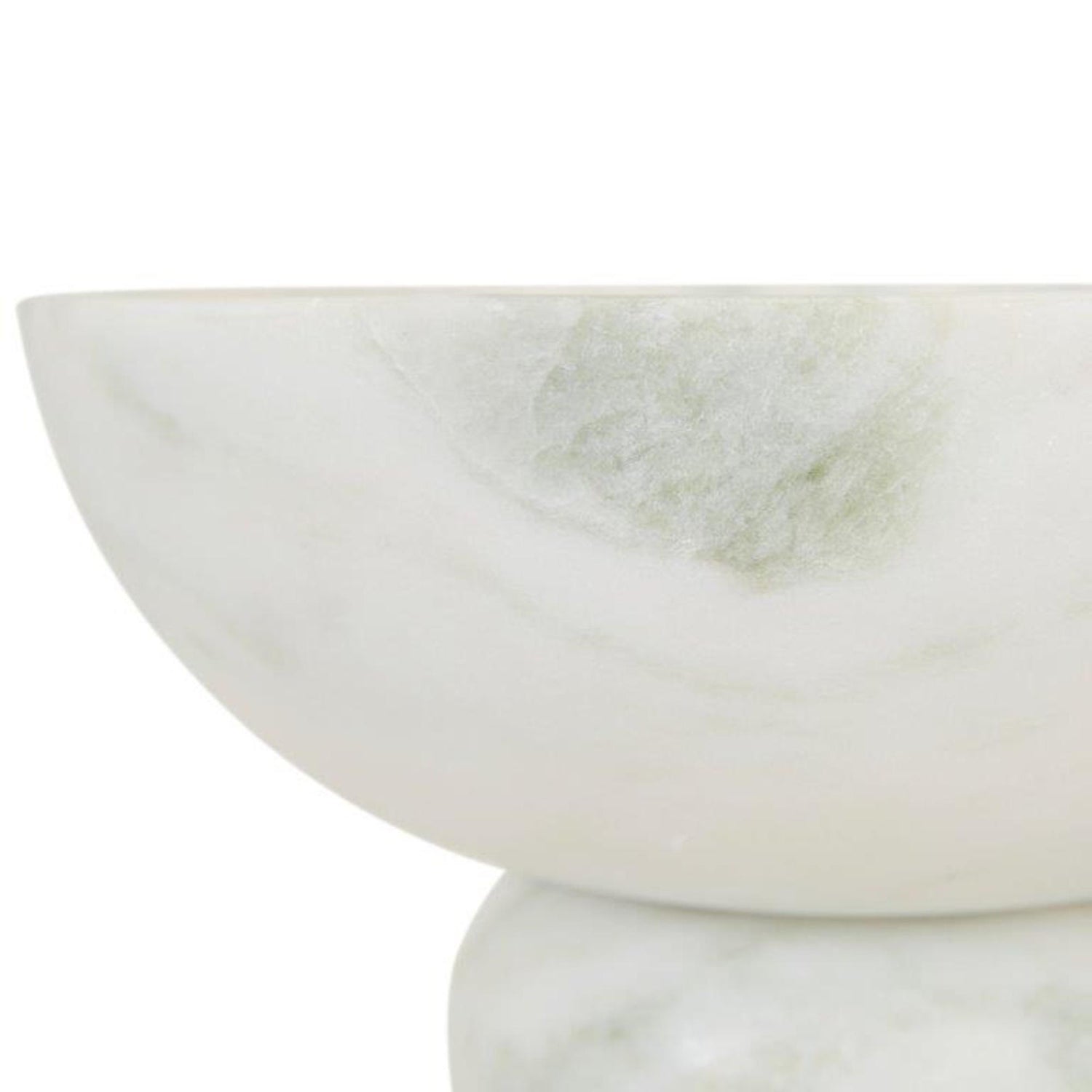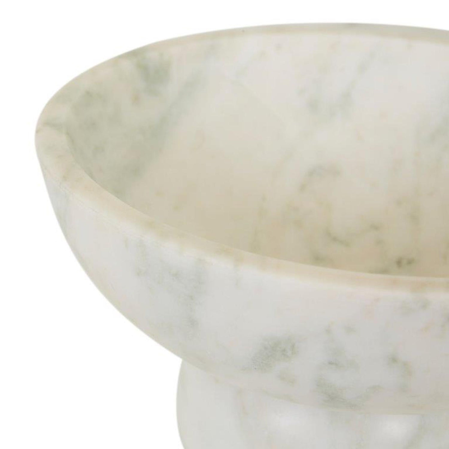 Simple and distinctive details allow the marble design of the Rufus Indra Goblet Bowl to shine. Elevated on a rounded base, this bowl can stand alone or be paired with similar pieces for a sophisticated grouping.