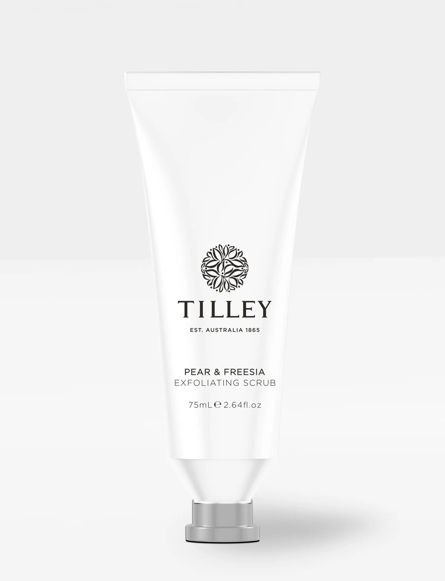 Enjoy a luxurious shower with our Pear & Freesia Essential Body Trio, featuring an exfoliating scrub, in-shower lotion, and hand cream. Bright notes of apple, lemon, peach, and pineapple blend with floral muguet rose and white flowers, finishing with warm amber, musk and patchouli. This trio leaves skin smooth, hydrated, and beautifully scented.