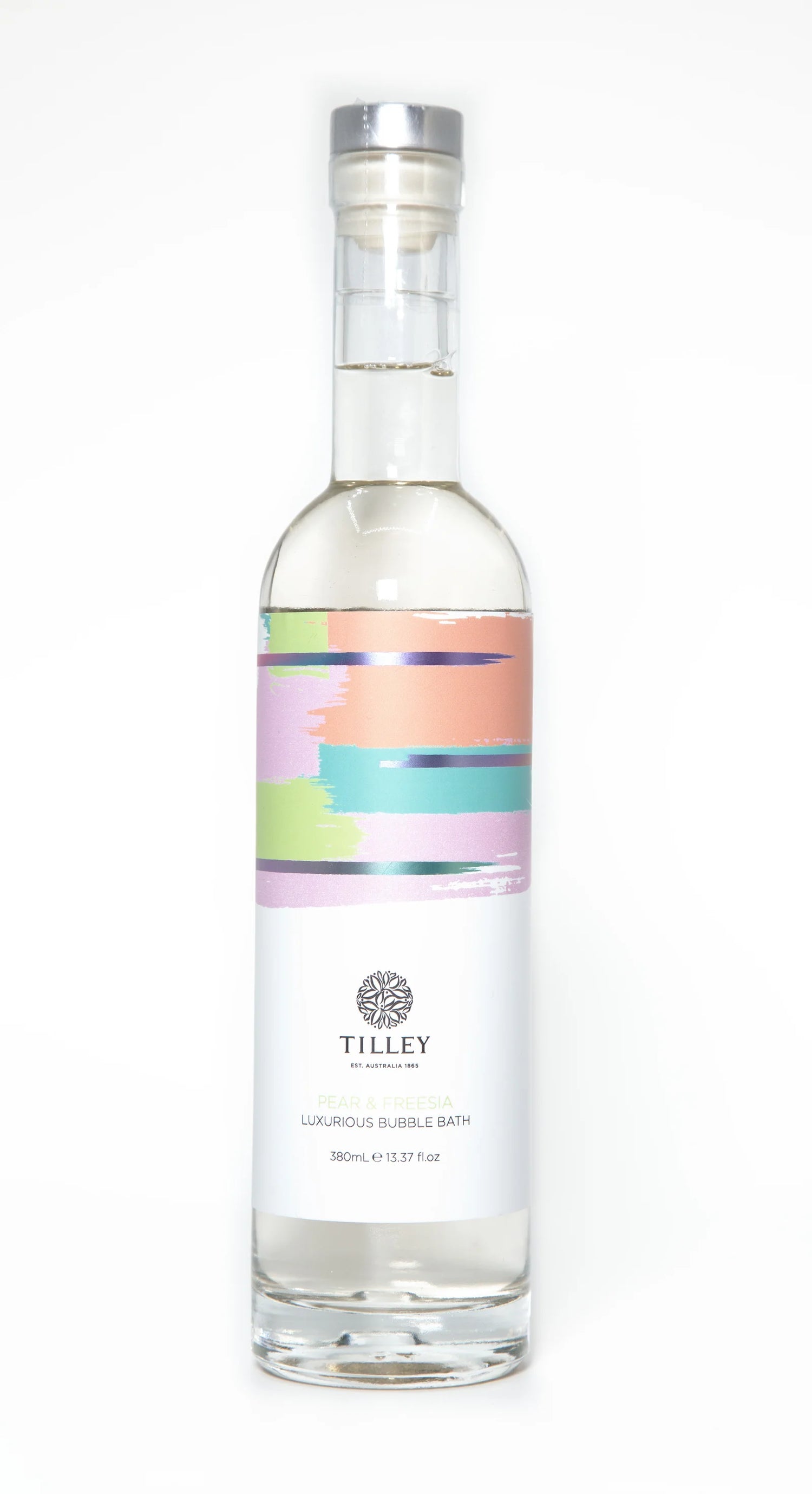 Elevate your bath with our Pear & Freesia Bubble Bath. Bright notes of apple, lemon, peach, and pineapple blend with soft muguet rose and white flowers, finishing with warm amber, musk and patchouli. Enjoy silky bubbles and a scent that rejuvenates and delicately lingers on your skin.