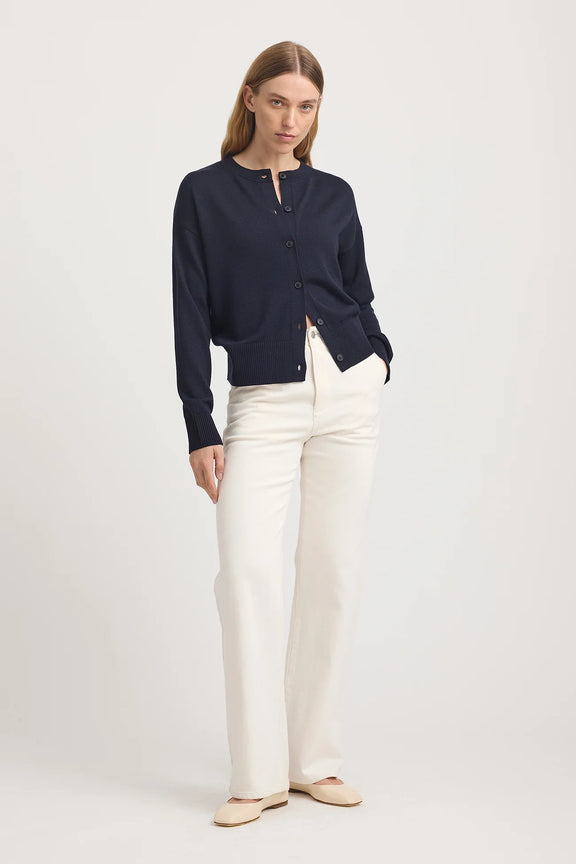 The Fine Knit Cardigan is a classic wardrobe staple made of lightweight Australian Merino Wool. The relaxed silhouette has a button-down front, with ribbed detail at the round neck, wrists, and hem. Considered detail, like the pinch seam at the centre back, quietly completes this enduring piece.