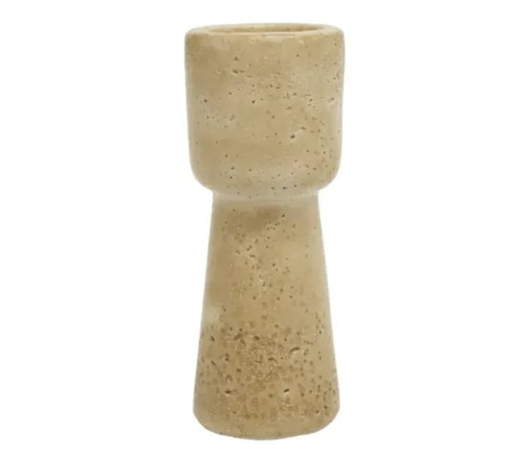 Enhance your home with the Travertine Look Candle Holder - tall, blending modern style with timeless charm. Featuring a white and cement finish inspired by the textured elegance of travertine, this piece brings a natural yet refined touch to any décor. Its slender design is perfect for creating height and visual interest on your table, mantel, or shelf. This versatile candle holder is a statement of understated luxury. Pair it with the Travertine Look Candle Holder - small for a cohesive look.