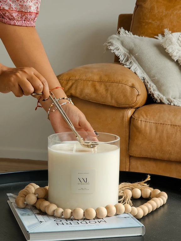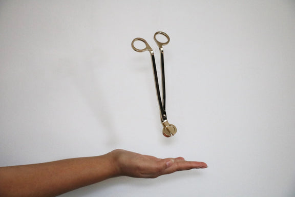 Our gold wick trimmer is your go-to tool for maintaining your candle in perfect condition, heavy and durable, use this to trim your cotton or wooden wick after every burn for that clean burning.